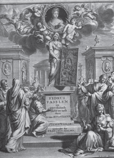David van Hoogstraten was daarentegen een bekend voorstander van de Oranjes. Hij had zijn werk opgedragen aan “AEN DE DOORLUCHTIGSTE HOOGGEBORE VORSTINNE AMELIA, DOOR GODTS GENADE PRINSESSE VAN NASSAU, GEBORE VORSTINNE TE ANHALT, HARTOGINNE TE SAXEN,” etc.