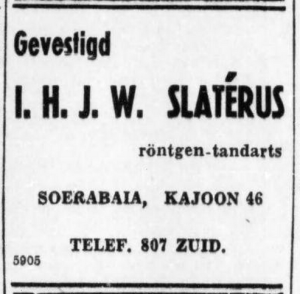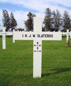 Vandaag op 4 mei gedenken we alle slachtoffers van de Tweede Wereldoorlog. Ik schreef al eerder over Mina Slaterus-de Jong, die in Auschwitz om het leven is gebracht door de Nazi’s. In het Slachtofferregister van de Oorlogsgravenstichting vinden we nog twee familieleden: tandarts Idanus Hendrikus Jan Willem Slaterus, die op 23-04-1945 om het leven is gekomen in Ambarawa, kamp 7; en Leontine Wilhelmine Eleonore Slaterus, die op 13-01-1945 gestorven was in het Japans burgerkamp Solo bij Soerakarta.