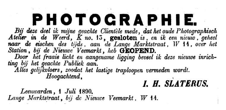 “Nieuw Atelier” aan de Langemarktstraat W. 14 (1890 – 1909) 25 vrijdag mei 2012 Originele grootte op 836 × 408 ≈ Een reactie plaatsen Leeuwarder Courant, 4 juli 1890
