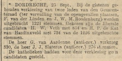 Dordrecht, Gemeenteraad, generatie 10, generatie 12, Hoezeas Slaterus, Johannes Jacobus Slaterus, Leeuwarden, Verkiezingen