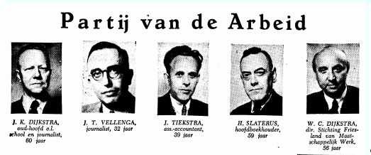 Opa bleef daarna nog 10 jaar in de Leeuwarder gemeenteraad actief. Bij de verkiezing in 1949 verloor de PvdA weliswaar een zetel, maar vier jaar later kreeg de partij er twee bij en had zelfs de absolute meerderheid in de raad. Het is leuk om de gemeenteraadsverslagen na te lezen op de website van het Historisch Centrum Leeuwarden. Het ging soms om kleine onderwerpen zoals verlichting op het uurwerk van de Oldehove, soms om grote onderwerpen zoals de financiering van de sociale woningbouw.