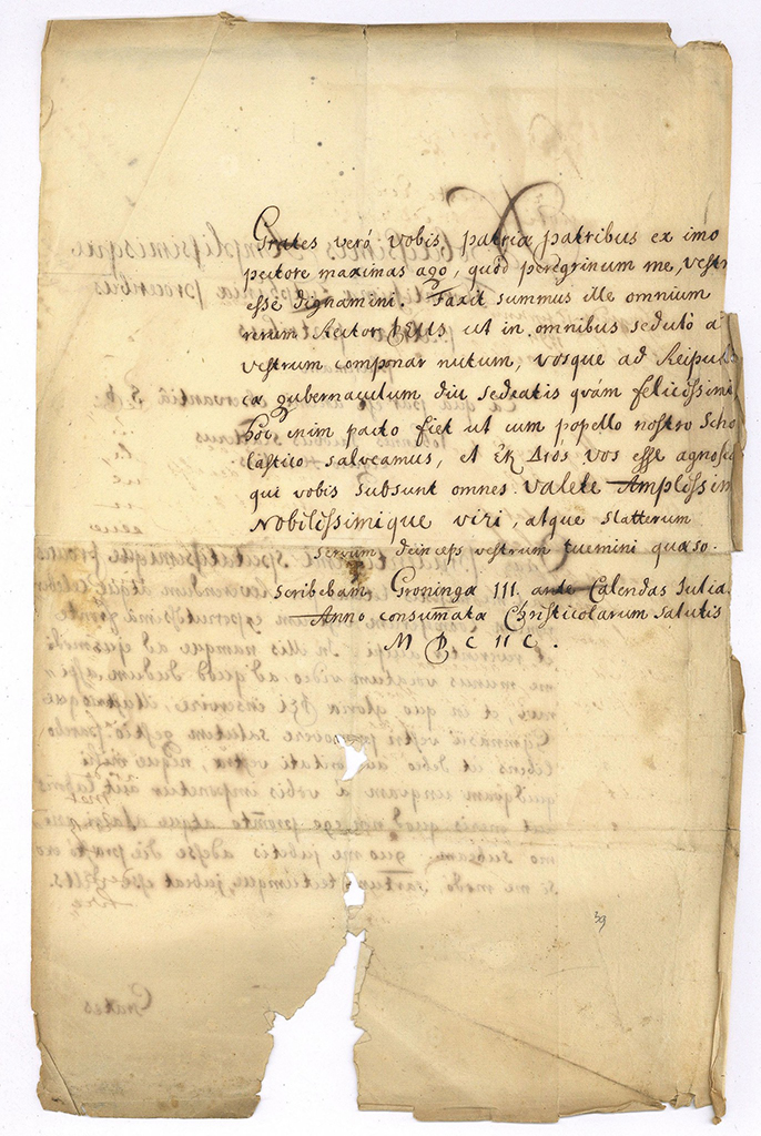 Ik heb de brief, die u hooggeachte bestuurders, door bemiddeling van de eerbiedwaardige en zeer beroemde heer Lomeijer, aan mij hebben gezonde met veel vreugde en ontzag ontvangen. Want hierin lees ik dat tot het ambt word uitgenodigd, waarop ik kort geleden heb gesolliciteerd.