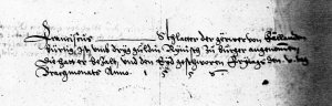 Vertaling “Francisicus Schlatter, de leerlooier geboren in Fällanden [=een dorpje vlakbij Zürich] is voor drie Rijnlandse Guldens tot Burger aangenomen, welke hij betaald heeft en de eed gezworen heeft op vrijdag 5 juni 1556.”